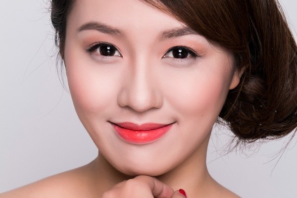 Mắt : dùng tông mắt màu hồng nhạt tán toàn bộ hốc mắt, tông vàng nhạt tán bầu mắt, tông đen nhấn đuôi mắt. Kẻ mắt nước , bấm mi và chuốt mascara.